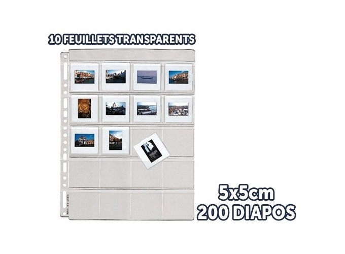 10 feuillets pour 200 diapositives avec bande titre et dos dépoli.